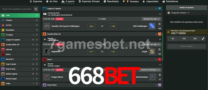 O 668bet oferece uma grande seleção de opções de apostas em e-sports com probabilidades competitivas